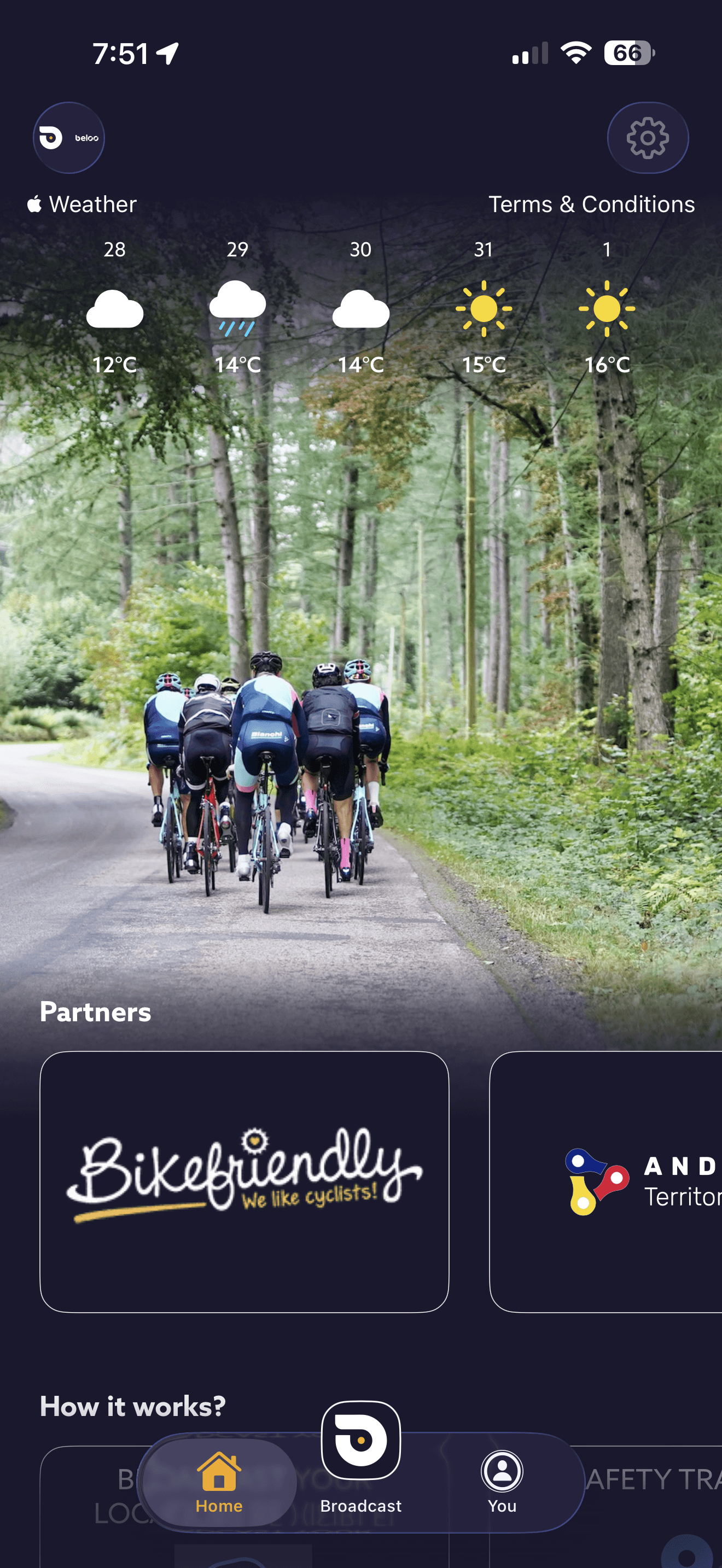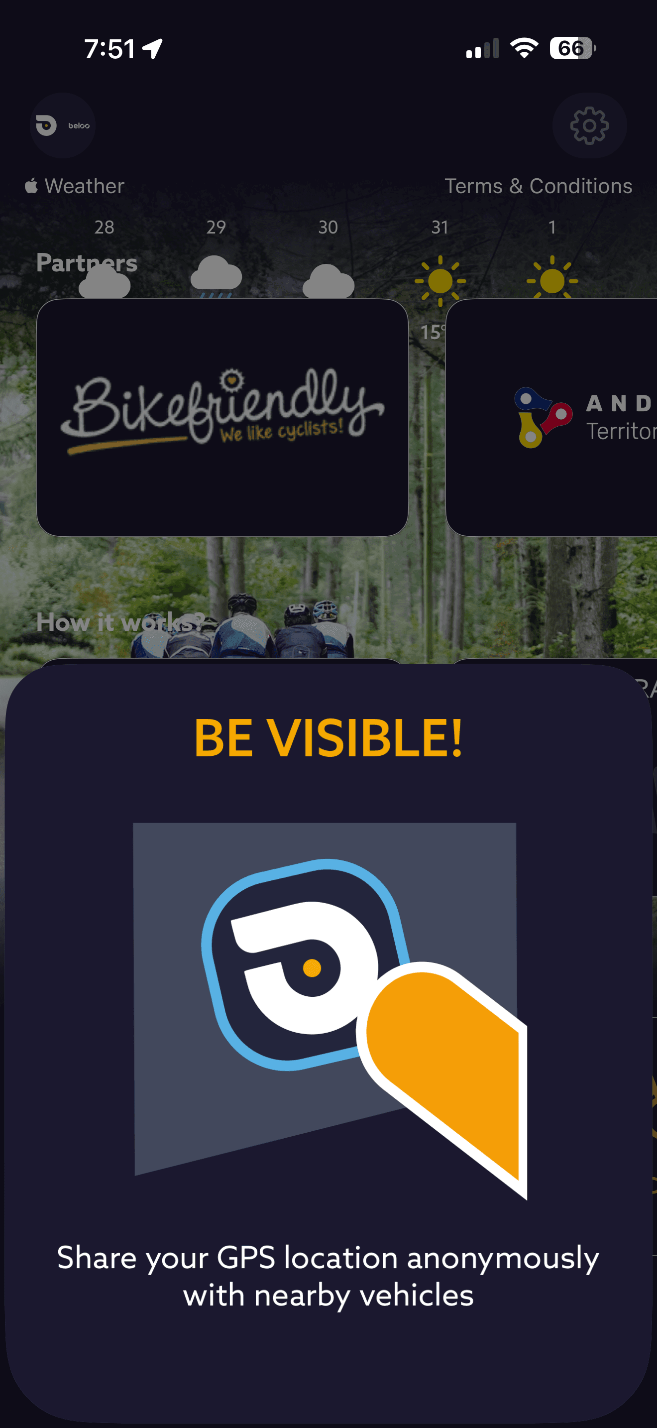 The social features allow you to share your location by sharing a link, sharing your position with other cyclists on the app on the map, and creating events and rides to join. The maps also show relevant points such as water fountains, hills, repair shops, etc.